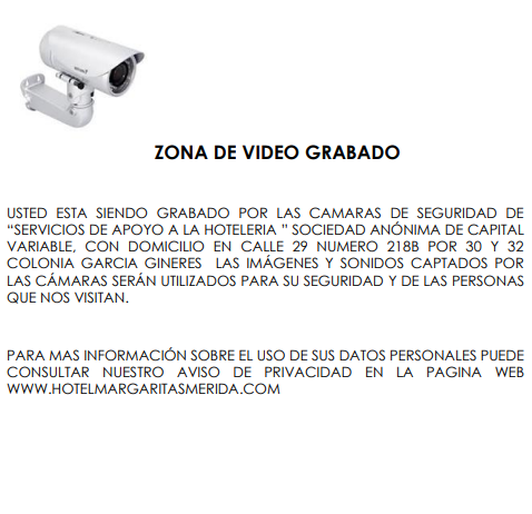 Nos ponemos a su total y completa disposición en la dirección de la Empresa ubicado en calle 29 numero 218B por 30 y 32 colonia Garcia Gineres , código postal 97070 en la ciudad de Merida , Yucatan , Mexico , así como a través de nuestra página de Internet y por medio de los correos electrónico Info@hotelmargaritasmerida.com